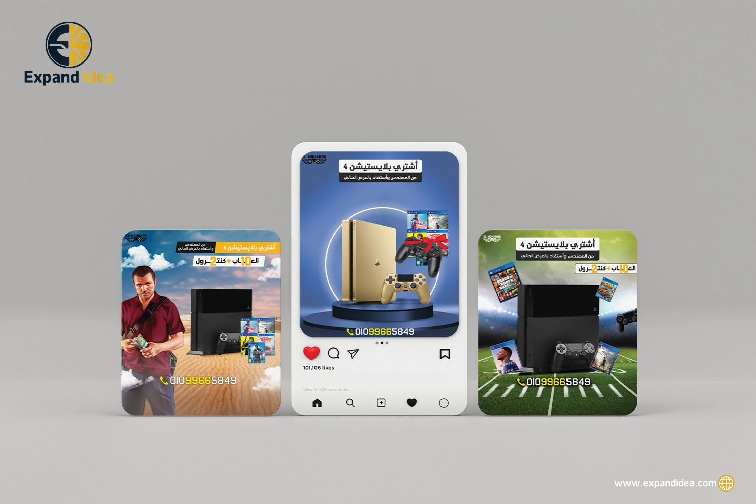 بالإضافة إلى عديد من أنواع العناصر الأخرى التي نعمل على تصميمها في اكسباند ايديا شركة تصميمات سوشيال ميديا.